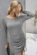 Solid Rib Knit Drawstring Front Bodycon Dress
